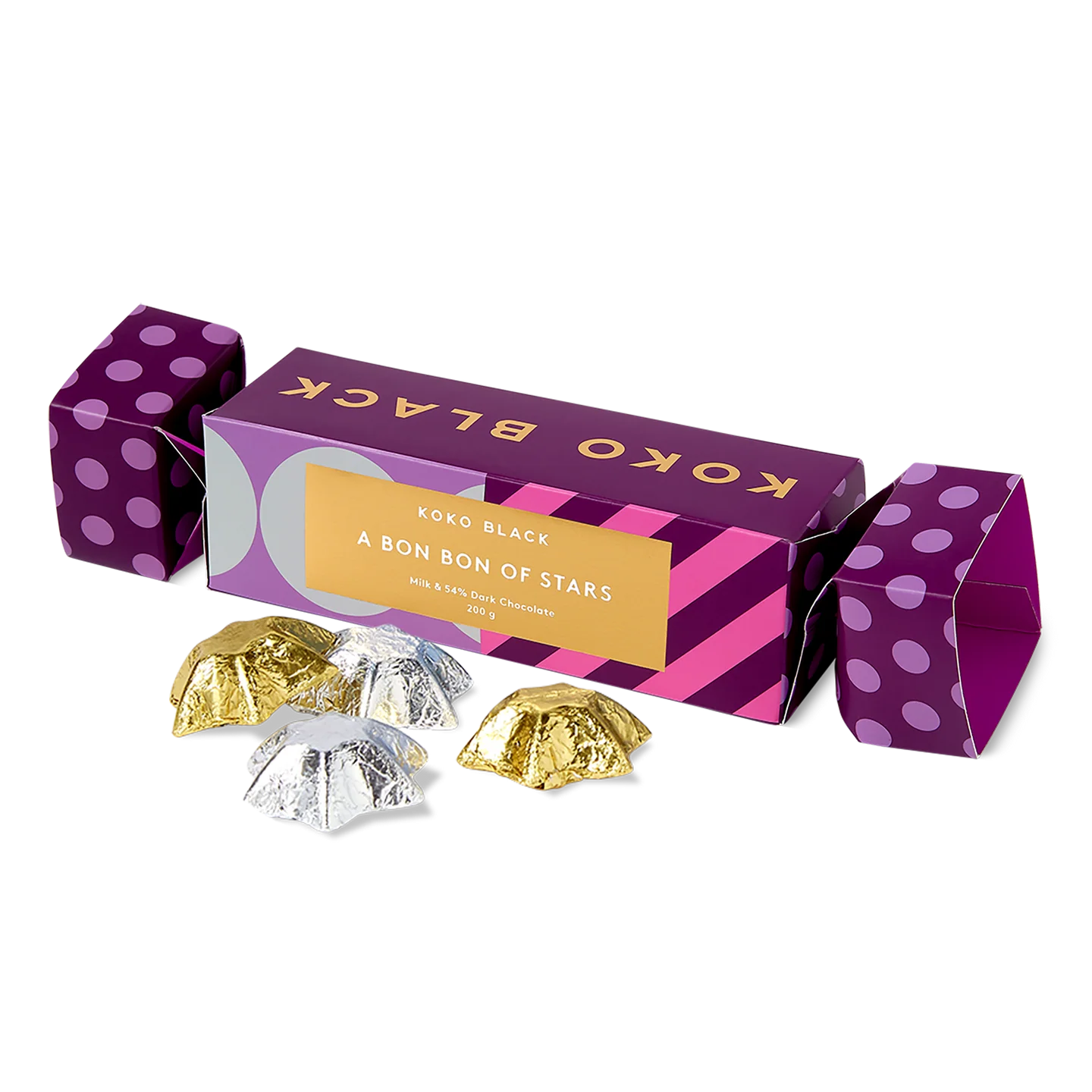 A constellation of milk and dark chocolate stars to make every Christmas wish come true, wrapped in foil so you can unravel the wonder waiting inside.
