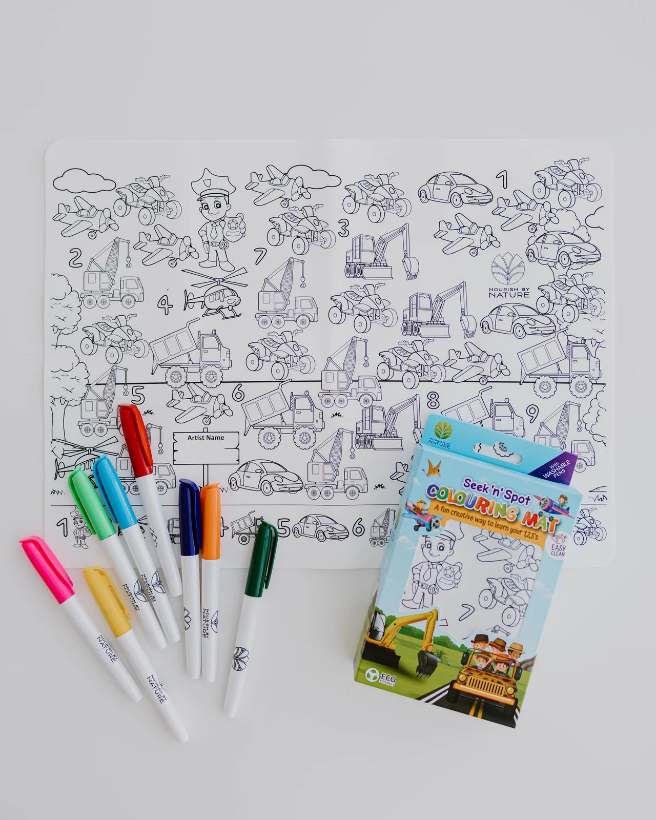 The Seek N Spot Silicone Colouring Mat – Cars & Trucks edition is a reusable activity mat designed to spark curiosity and creativity in transport-loving kids. Featuring a detailed A3 cityscape filled with vehicles to colour, count, and find, it offers an engaging, screen-free way to support learning through play.